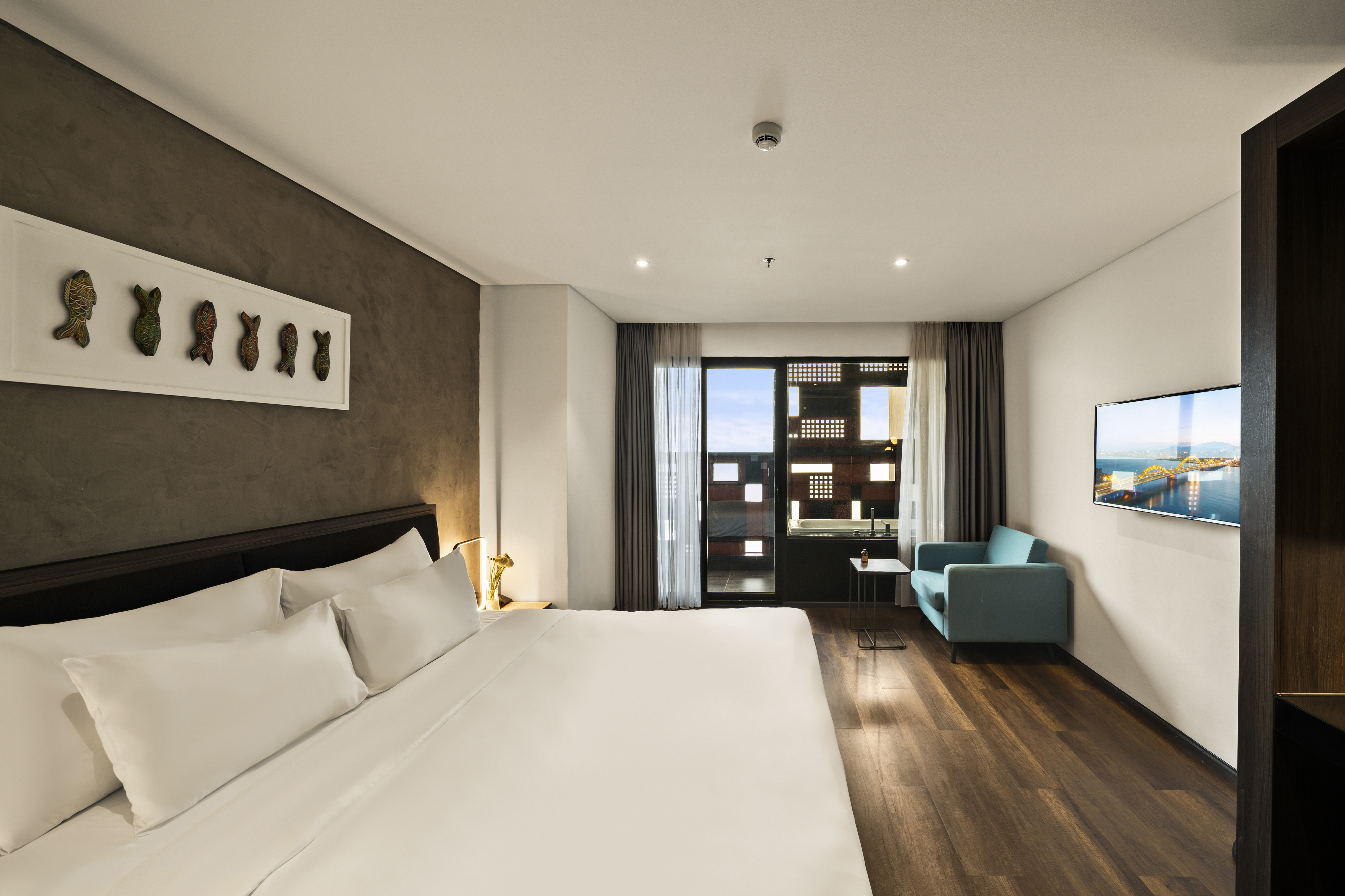 Enjoy heavenly the beauty of romantic and rustic fishing village nestled under the Monkey Mountain, blue sky and emerald-green water. Suite that has elegant yet sophiscated architecture, also owns the stunning view from above. It is coupled with the the state-of-the-art facilities and equipments to meet the needs of rest and relaxation.